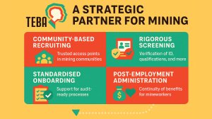 From community-based recruiting and verification to onsite onboarding support and post-employment administration, specialist human capital services provider to the mining sector TEBA positions its services to reduce workforce risk and improve operational readiness for mines and contractors across Southern Africa.